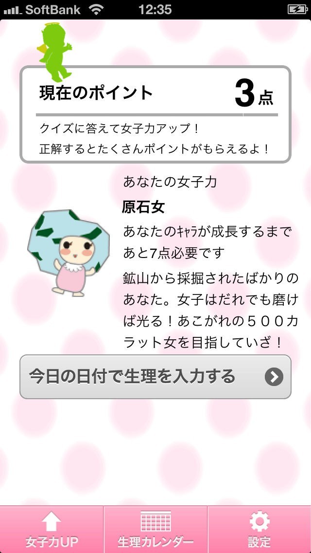 生理日予測機能が搭載されているため、生理の管理もスムーズに行えるでしょう。排卵予定日や経過日数をカレンダーで確認出来ると同時に、平均周期を表示してくれるのも特徴ですね。