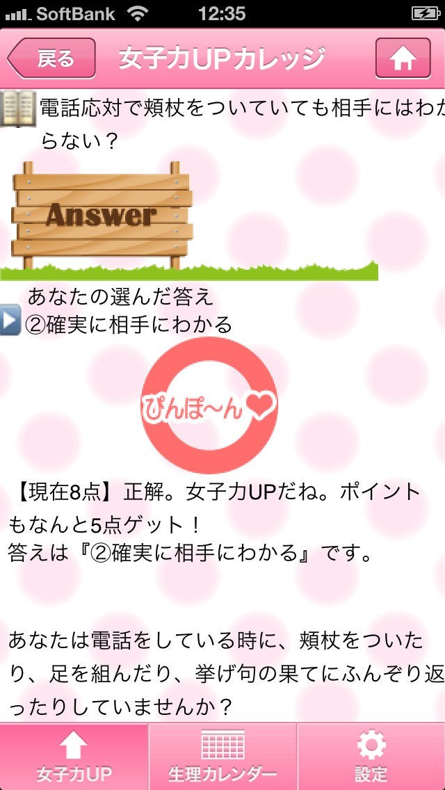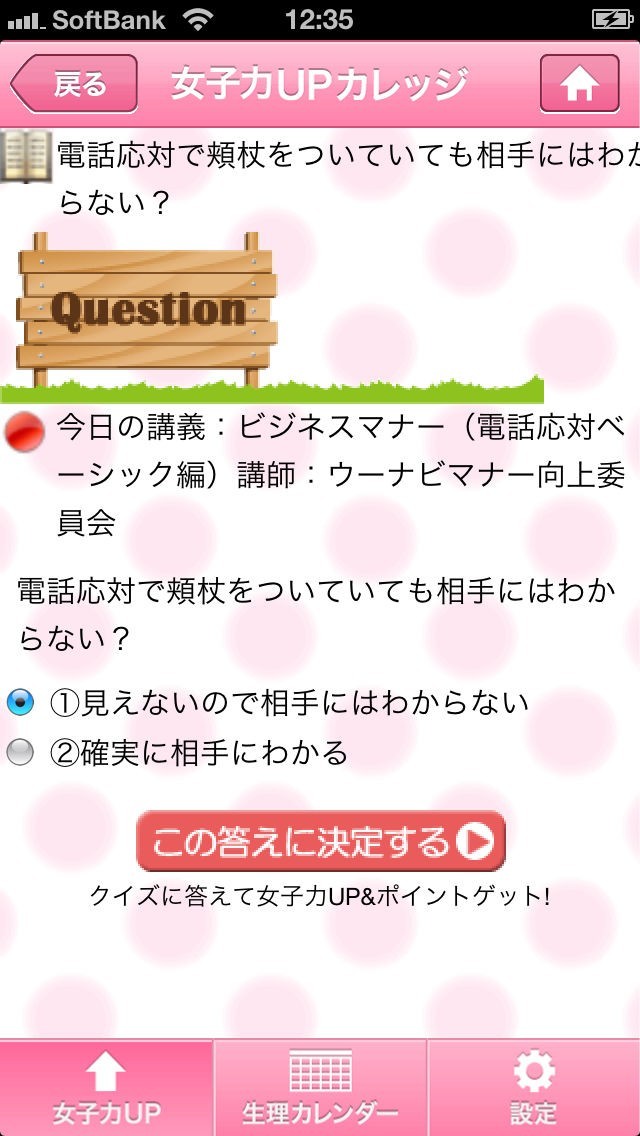 ビジネスマナー等の問題が豊富に収録されていて、クイズ形式で挑戦出来るようになっています。またダイエットやメディカル等のカテゴリーで記事をチェック出来るので、気になる情報も素早く調べられますよ。
