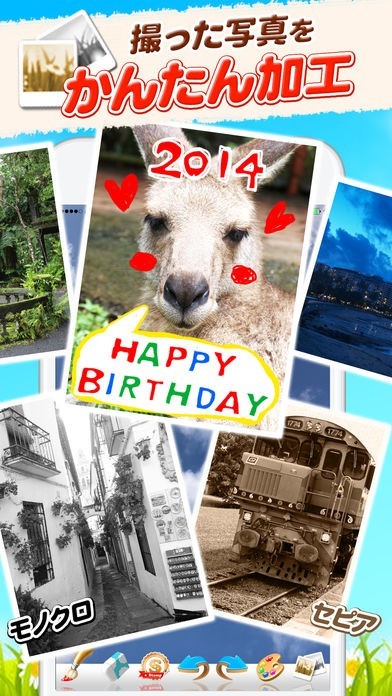 小さな子どもにお絵かきする楽しさを体験させたい時に使えるのがこのアプリです。 小さな子どもでも使い易いお絵かき機能が付いており、色鉛筆やクレヨンがなくてもスマホで描けるようになります。 失敗しても用紙が無駄になることはありません。 たくさん用意されている塗り絵からお好みで選び、塗りたい色を選んで描いていきます。 スマホに保存してある写真の上に描く他、スタンプでデコレーションすることも可能です。 写真加工機能にあるセピアを使用すると昔風の写真に加工ができます。 子どもが上手に描けたので他のママ友に知らせたい時に便利なのが共有機能です。 LINEなどのSNSサービスにてすぐに投稿できるようになります。