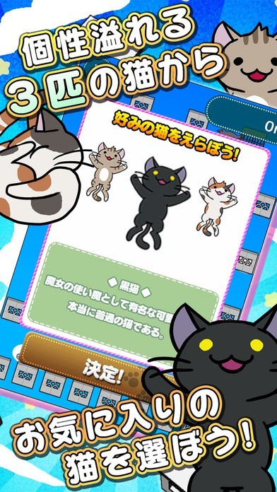 ゲーム開始時に3匹の猫から1匹を選びます。