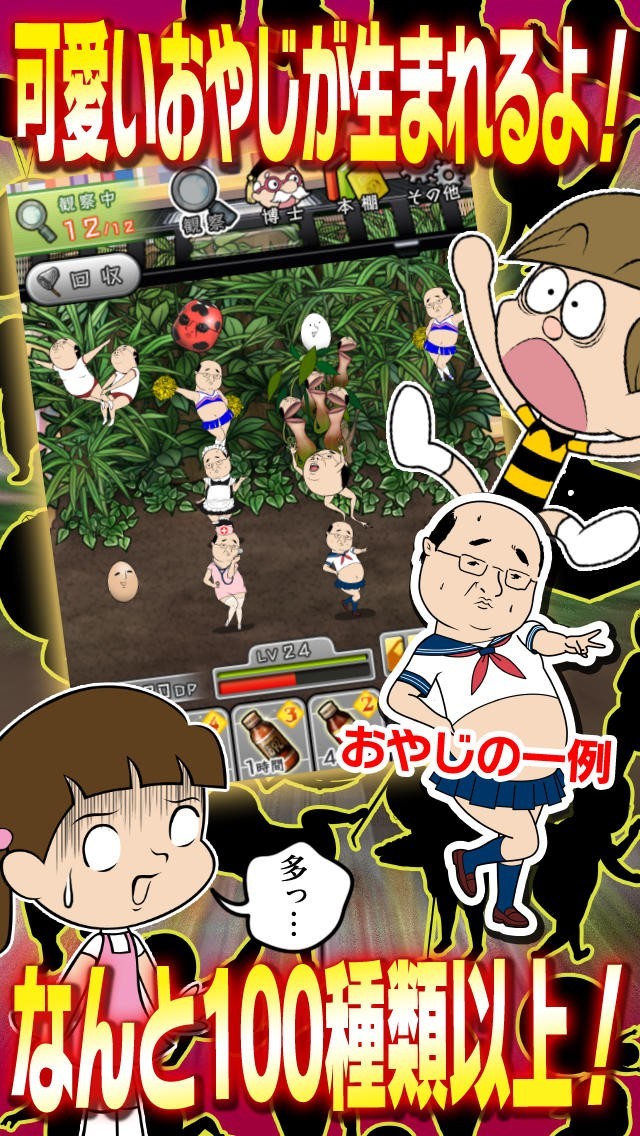 日本全国どこにでも存在する「おやじ」を育成して観察日記を楽しむゲーム!奇想天外なキモ可愛いおやじ満載です。
