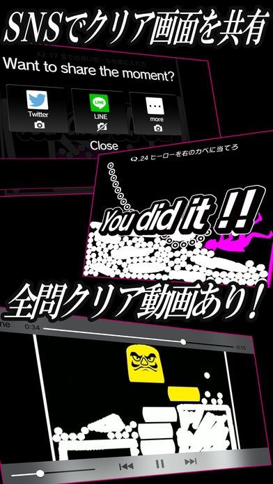 手応え抜群のパズルを多数収録した「Q.」では、1000問以上を用意しています。シンプルながら奥深い激ムズ問題の数々は、毎日の脳トレとして隙間時間にプレイしたい方にも最適です。問題ごとにクリア方法が複数存在しているため、友達同士でワイワイ騒ぎながら遊びたい学生さんも、皆で集まって楽しくプレイすることができるでしょう。オリジナリティ溢れるクリア方法を思いつけば、友達も驚くこと間違いなしとなっています。SNS共有機能を使えばTwitterやFacebookにゲーム画像の投稿も可能。新たな解決方法を探して友達と盛り上がることもできるようになっています。