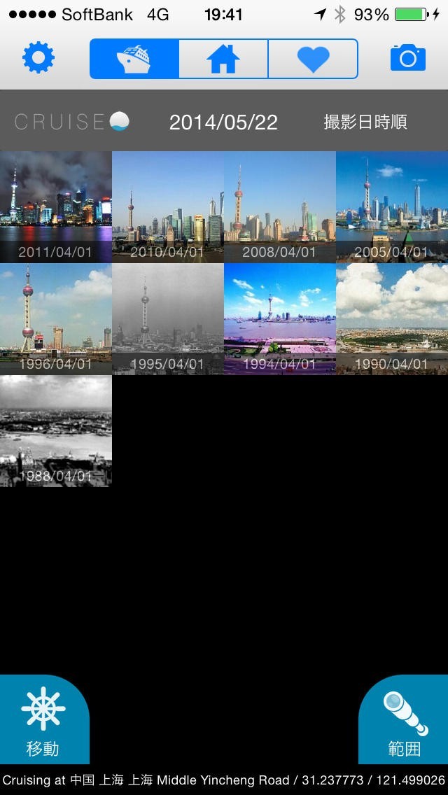「CRUISE〜フォトナビゲーション/皆で作る写真投稿アルバム」アプリでは、世界中の場所の写真を地図をなぞるだけで見る事が出来るアプリです。 世界中の見たい場所を地図から選ぶと、写真が沢山出てきます。同じ場所の写真でも、過去の写真から現代の写真まで見る事が出来てしまうのです。まるでタイムスリップした気分となるアプリなのです。 また、自分の撮った場所の写真を投稿する事も可能です。現在のお気に入りの場所の風景を未来へと残してみてはいかがでしょうか。