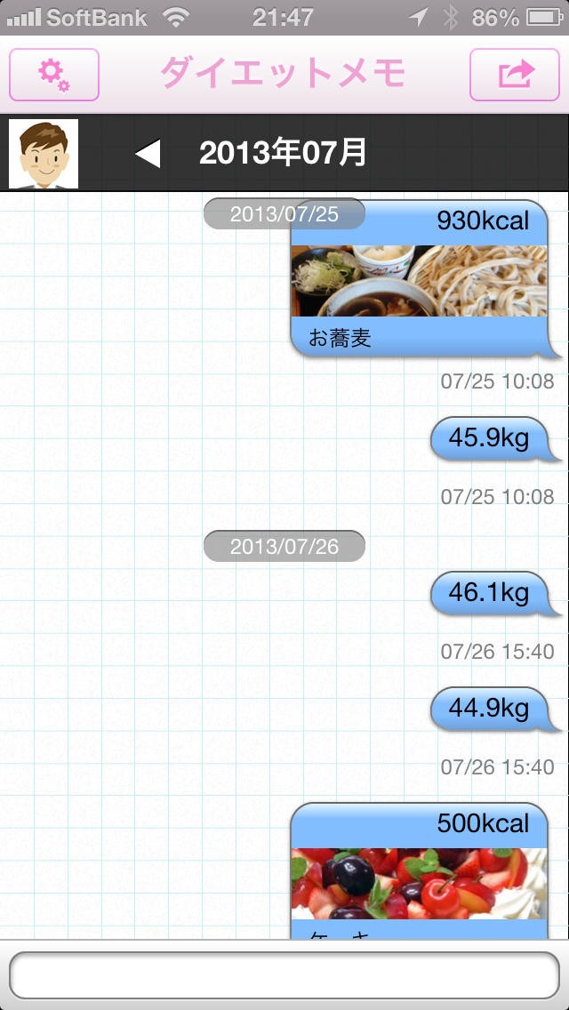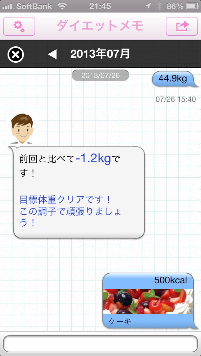 チャット形式で楽しく入力していける!写真や食事のメモをまとめて管理出来るダイエットヘルスケアアプリ