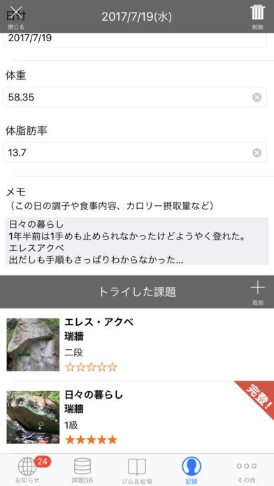 トレーナーの指示するウェイトのトレーニングや、食事の仕方などを、メモで共有することができます。ジムのトレーナーと二人三脚で上を目指すことが可能となっております。
