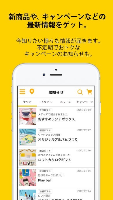 LOFTのキャンペーン情報をチェックしたり、在庫情報の確認をすることができる!