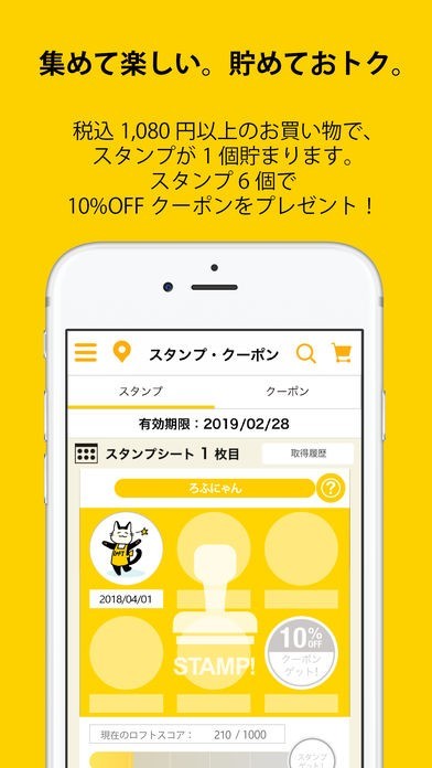 LOFTアプリは、買い物をしながらスタンプ機能を使ってスタンプ6個貯めると10%OFFクーポンをがもらえる