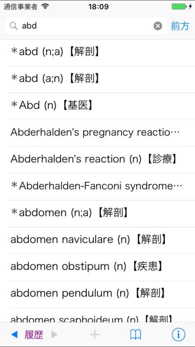 アプリ内で検索したワードは履歴に一語ずつ保存される仕組みとなっています。そのため履歴内の単語をタップするだけで情報を閲覧でき、再度辞書を引き直す手間を省くことができます。