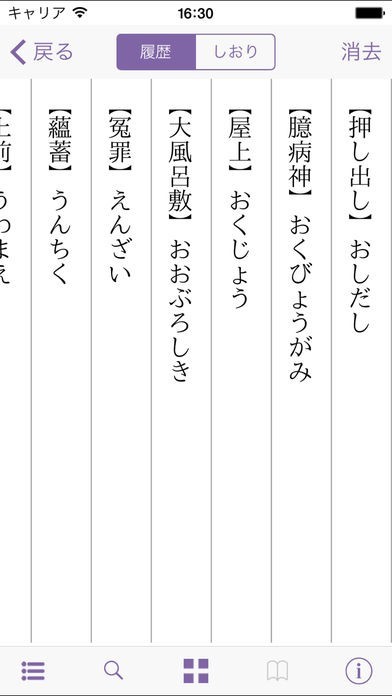 ●連続する辞書引きに役立つ履歴表示、しおりなど。