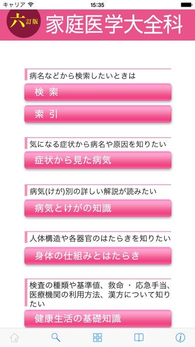 家庭の医学が簡単操作のアプリになっていたので入れました。見やすさに配慮されてあり、空いた時間にも勉強になりますね。