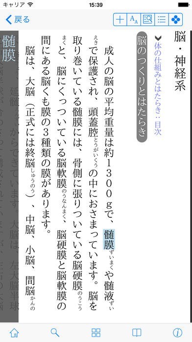 重い辞典ではなくて、アプリで手軽に医学の知識が学べます。コンテンツごとにきちんとまとまっていますので操作しやすいです。