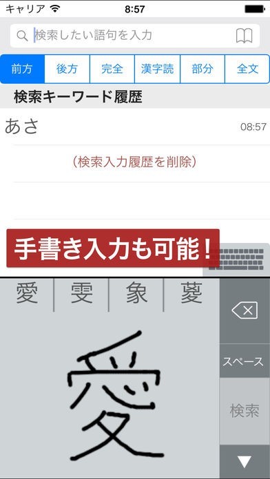 読みの分からない漢字は手書き検索