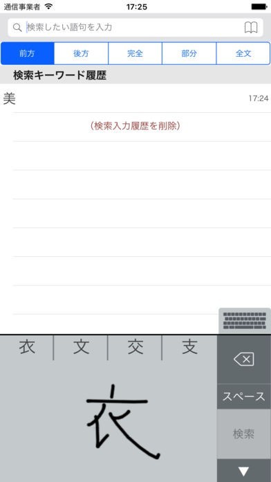 文字を手書きで検索することができる