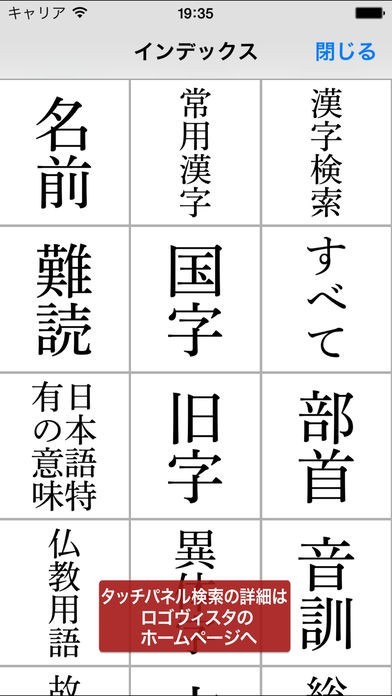 漢字をタップして拡大表示できる