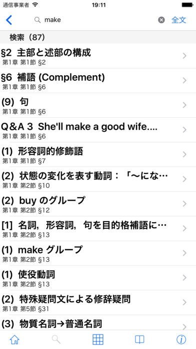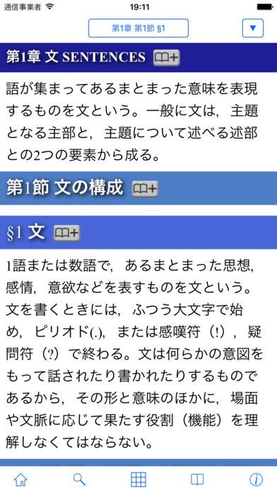 目次をタップすることで、目的の章に一瞬で移ることが可能です。他にもキーワード検索や、iPhoneに合わせたインターフェイス、目が疲れにくくなる黒文字と白文字の切り替え機能などを搭載し、大変使いやすくなっています。