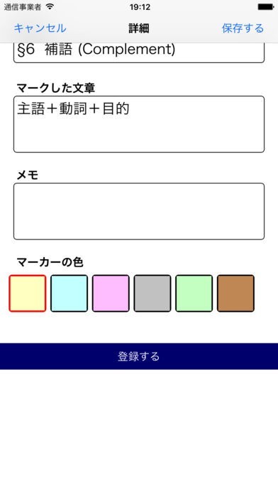 表示した文法の履歴保存機能や、画面回転の切り替え、複数の文法を参照したい時に役立つしおり機能、紙の辞書に蛍光ペンを引くような感覚で利用できるマーカー機能を搭載しています。