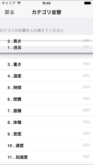 職業や好み、行動範囲によってアプリに登録されている単位の中でも優先順位の高さが変わってきます。よく使う単位を上位に表示したりと並び替えられる機能が利用できます。