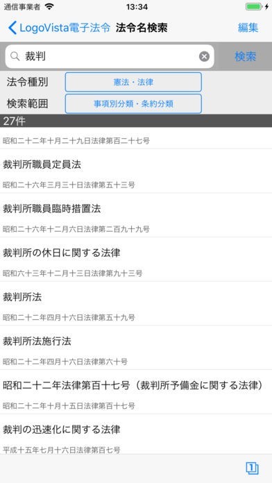 『LogoVista電子法令』は六法をはじめ現行の8,000以上ある全ての法令(憲法・法律・政令・勅令・府令・省令)をiPadあるいはiPhone上で簡単に検索・閲覧できるアプリです。iPadあるいはiPhone1台あれば、もう重い書籍を持ち歩く必要はありません。