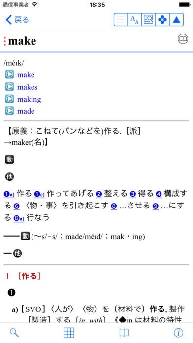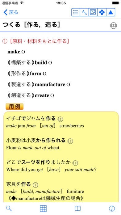 英和辞典機能が使えます。検索がしやすく構文の例も調べられます。