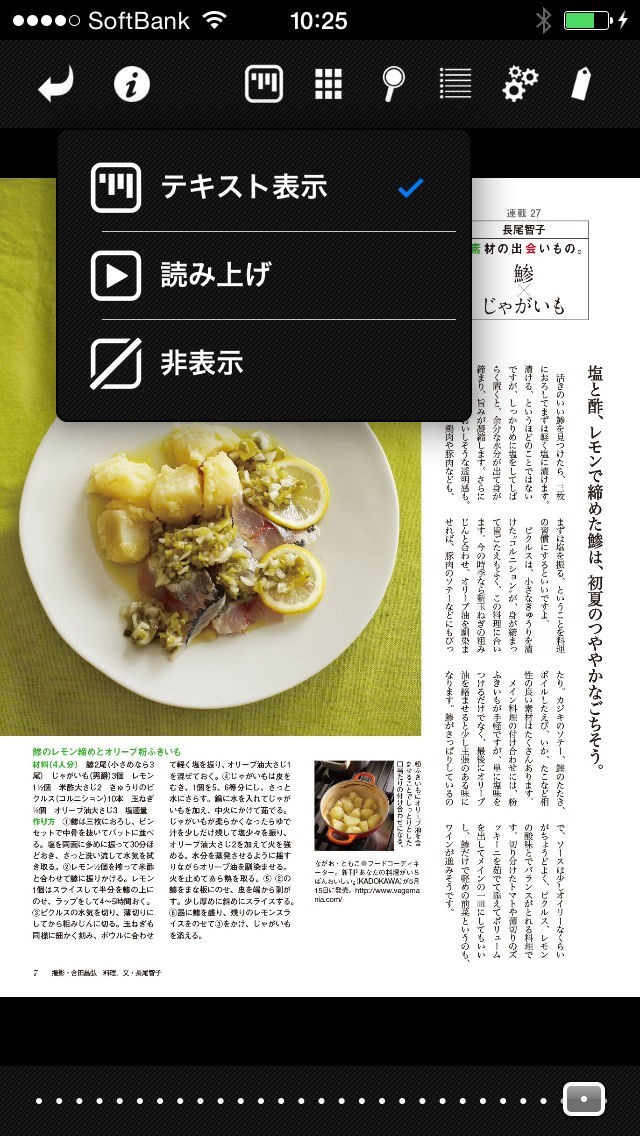 雑誌を音読してくれます。スピードを変えられる機能が親切だなと思いました。