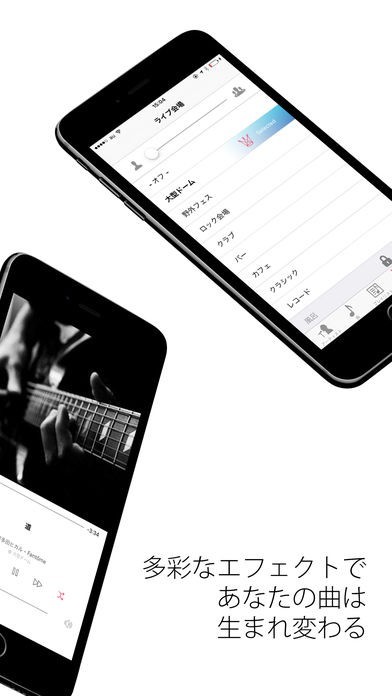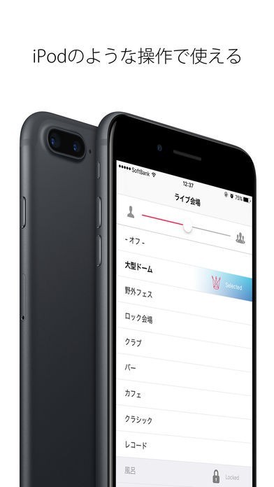 お気にいりの音楽に本物のライブの音を重ねることが出来るようになっていて、野外フェスやロック会場などを選択することで大迫力の音楽を楽しむことが出来るようになっています。