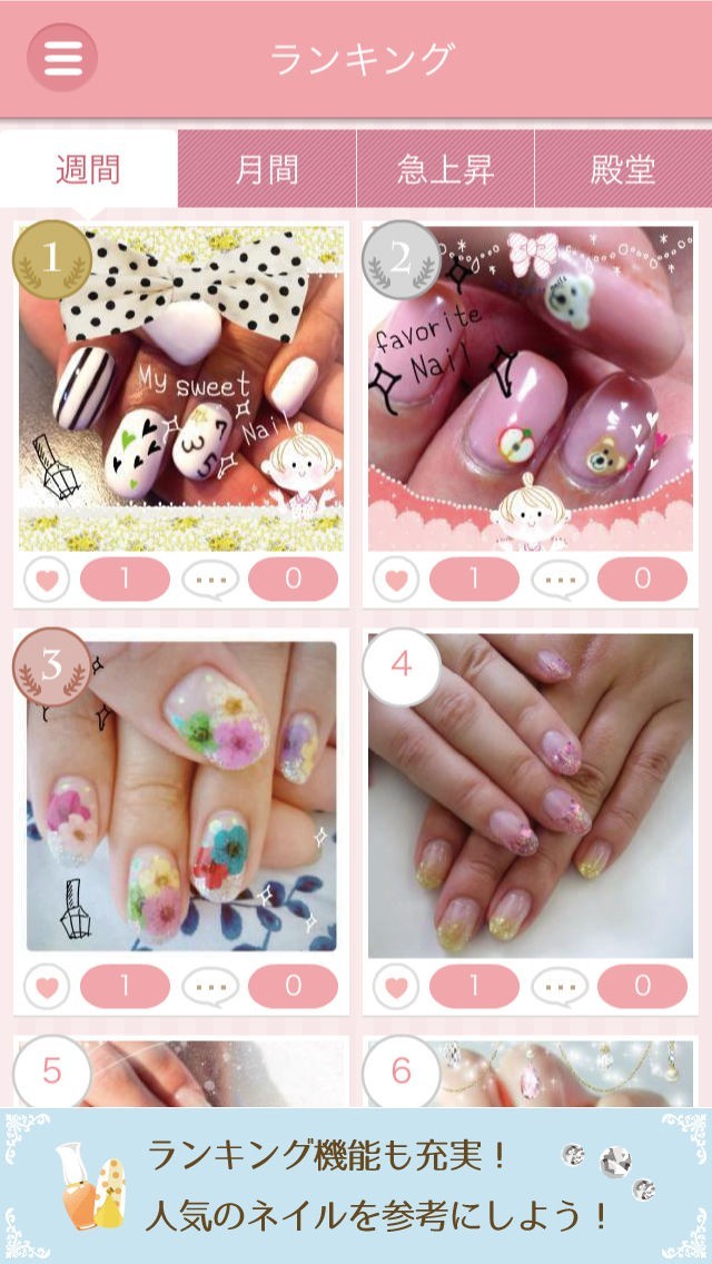 かわいいネイル、かっこいいネイル、真似したくなるネイルが盛りだくさん!1万点以上のネイル画像を掲載!さらに随時更新されていくので、お気に入りがきっとみつかります!
