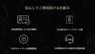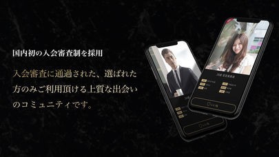 本人確認あり、登録は審査制。アッパー層向けのコミュニティーアプリで安心して利用できる。