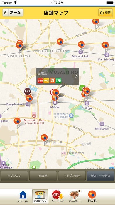 何処にお店が存在しているのか店舗マップ検索機能が搭載