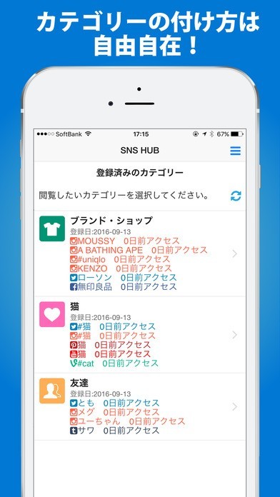 このアプリを使えば、ツイッターやフェイスブックなどの複数のソーシャル・ネットワーキング・サービスをひとつのアプリで管理することが出来るようになるので、いろいろなアプリをダウンロードしたり、起動したりする手間がかからないですみます。 よって、面倒くさがり屋の方に向いています。 また、「カテゴリー」ごとに管理することが出来る機能によって、リア友、芸能人、スポーツ選手などに分けて見れるので、重要度別にチェックしたりすることもできるので、時間が限られているような方にも向いていると言えるでしょう。 さらには、お店のお得情報などだけを見たりということも出来ることから、家計を預かる主婦の方が買い物をより安くしたりすることも出来ます。