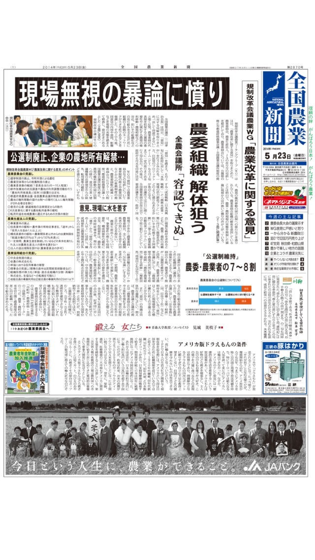 創刊60周年、農業専門誌として農業界を引っ張ってきた全国農業新聞が携帯やタブレット端末で読むことができます。1週間分の情報が掲載されているので、農業関連記事を集める必要ありません。読むだけで勉強になります。