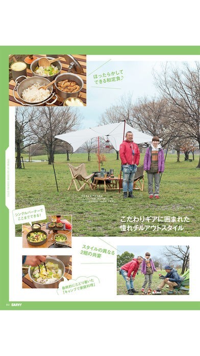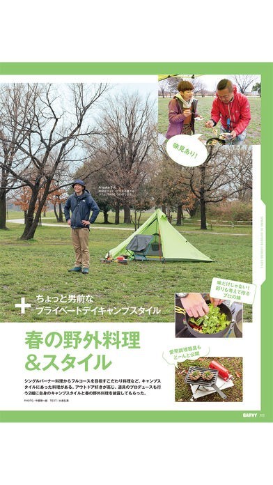 力を入れて毎号特集されているのがキャンプでの料理レシピ。王道のバーベキュー以外にも、様々なアウトドア料理を提案してくれます。これを読めばすぐにでもキャンプへ出発したくなるはず。