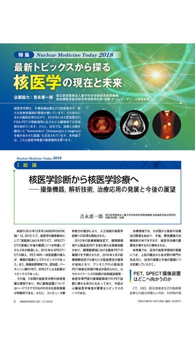 画像診断や放射線治療、会議レポートなど様々な記事が掲載された、医療と画像をテーマとした月刊誌です。
