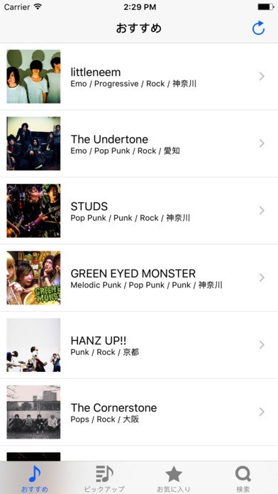 ジャンル別、地域別など検索条件が豊富!好きな音楽が見つけやすい!