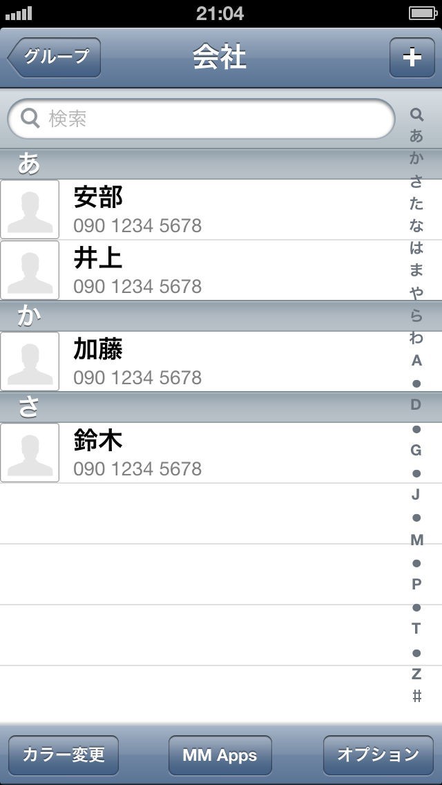 iphoneに搭載されている連絡先アプリの内容を変えずに登録されてる連絡先をグループ化できます。会社や家族、友人など様々な属性で連絡先を分けられるので探す際に迷うことがなくなります。グループ一覧では順番を自由に買えられるので、よく使うグループを上に持ってきて利便性を高めることができます。