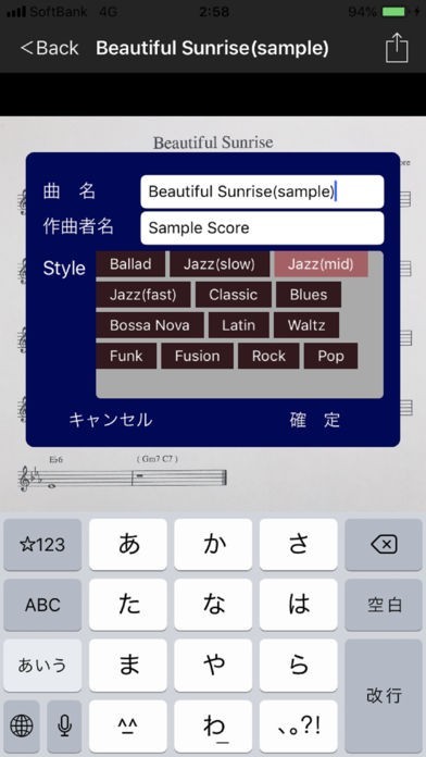 * 譜面をファイル共有(SNS送信や画像保存など)