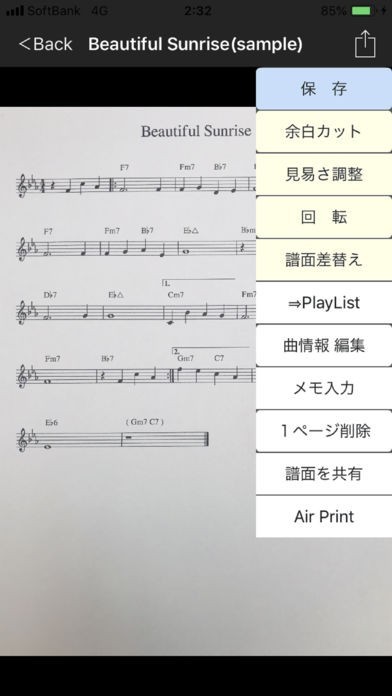 またアプリに取り込まれた譜面は、演奏メンバー間でファイル共有したり、必要に応じAir Printで紙に印刷したり、画像出力しコンビニで印刷したりと、周囲メンバーへの配布にもしっかり対応可能。