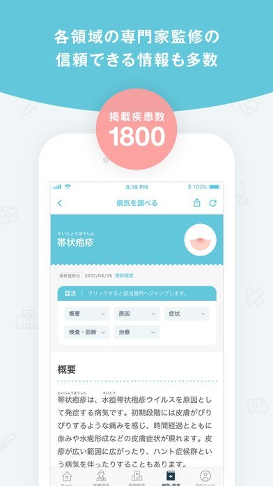 病気や症状を1800疾患から探せるアプリで無料で使えるので急な体調不良の時も助かっています。