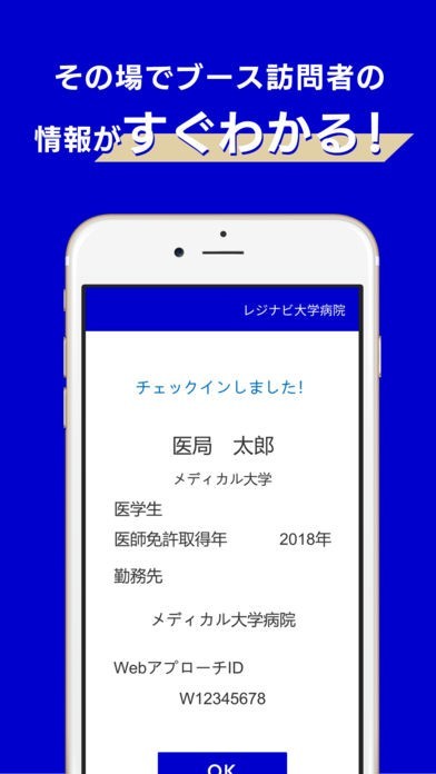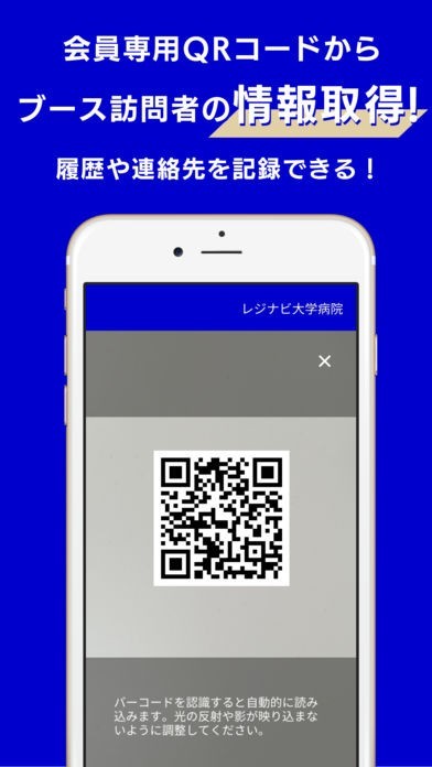 ブース訪問者の会員専用QRコードを読み取って、ブース訪問者の履歴や連絡先を記録することが出来るアプリです。