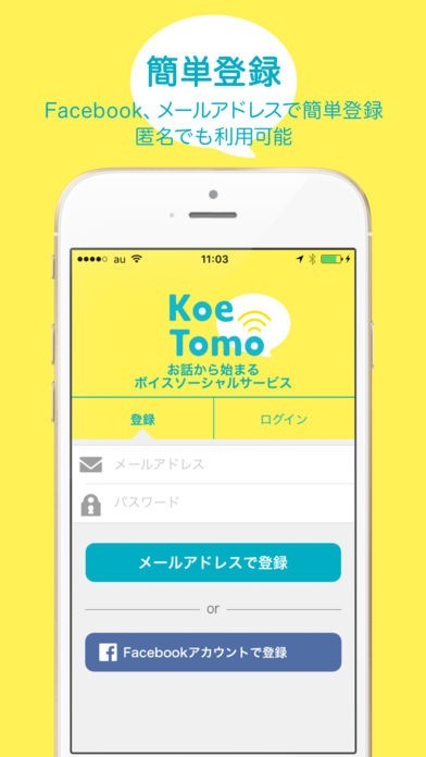 全国のユーザーとボイスチャットが楽しめる「KoeTomo」は性別や年齢を登録するだけで簡単に会員登録が行えるスマホアプリで、ネット上で悩み相談が出来る特長があります。タイムラインから特定のユーザーを検索することが可能ですし、お気に入りの相手を「声とも」に登録出来るのが機能のメリットでしょう。ボイス入力だけでなくテキストで他のユーザーと交流出来るようにもなっています。
