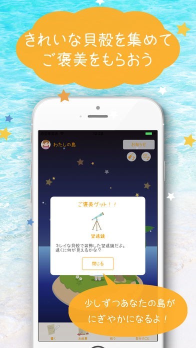 どこかの誰かにメッセージボトルが流れ着きます。もちろん逆もあるので、普段繋がる事のない誰かとのやり取りはワクワクします。島をカスタマイズ出来るのも楽しい!