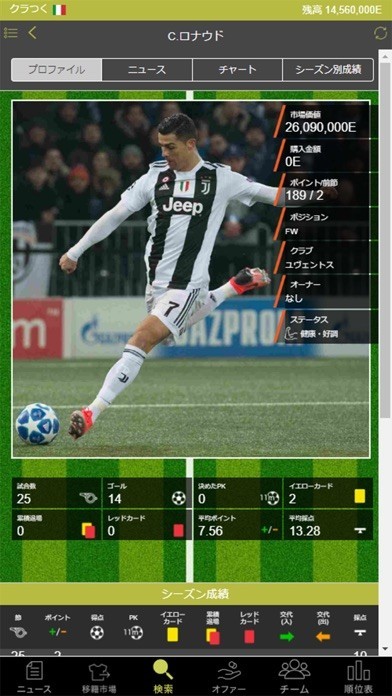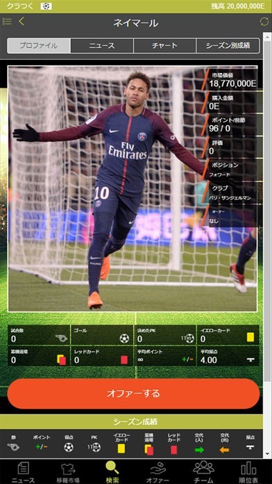 自分だけのサッカーチームが作れるアプリとなっています。最初は限られた資金の中から好みの選手と契約していきましょう。面白いのが実在のサッカーでの活躍によって市場価格が変動するという点です。活躍しそうな選手を獲得しておき、高くなったら放出といった運営方法ができます。