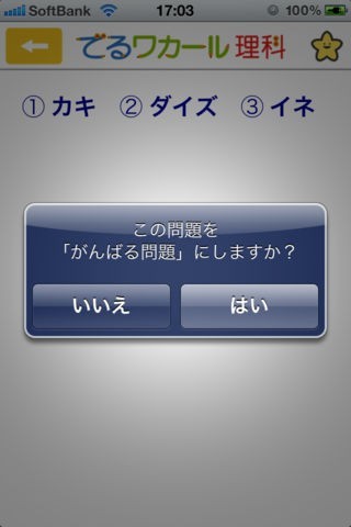 内容を確認しながら、どんどん覚えていきましょう。わからなかったり間違えた問題は、右上の星のボタンを押すと「がんばる問題」に設定することができます。「がんばる問題」の機能を上手に使って不得意な分野をなくし、得点アップにつなげましょう。繰り返しが大切ですよ。