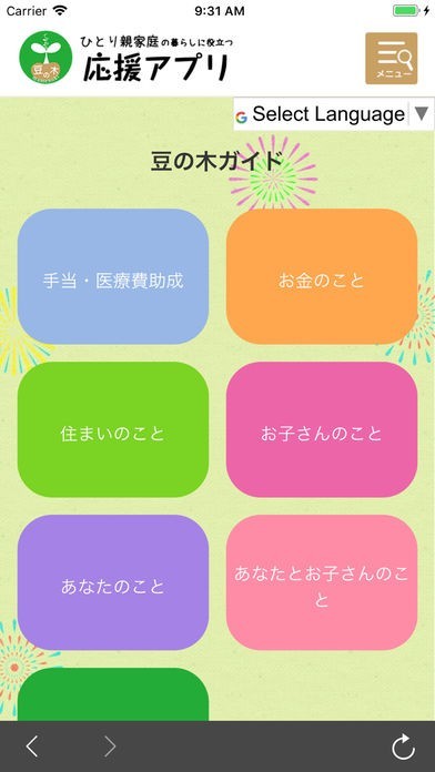 足立区ひとり親家庭の暮らしに役立つ応援アプリのスクリーンショット