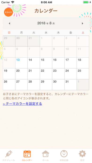 お子さんに合わせた予防接種スケジュールを自動作成し、プッシュ通知によりメッセージの受け取りができます。その他、子どもの身長や体重を写真やコメントと一緒に記録したり、成長をグラフで表示する成長記録機能や子育てに関する情報を閲覧することができます。