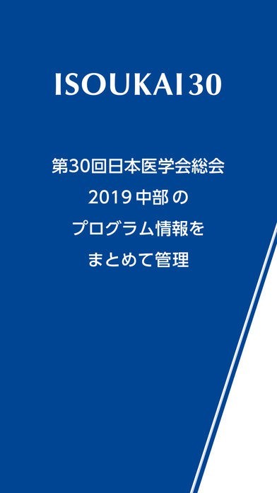 App Storeより引用『ISOUKAI30』は、第30回日本医学会総会 2019 中部のプログラム・抄録情報をダウンロードすることができるモバイルアプリケーションです。
