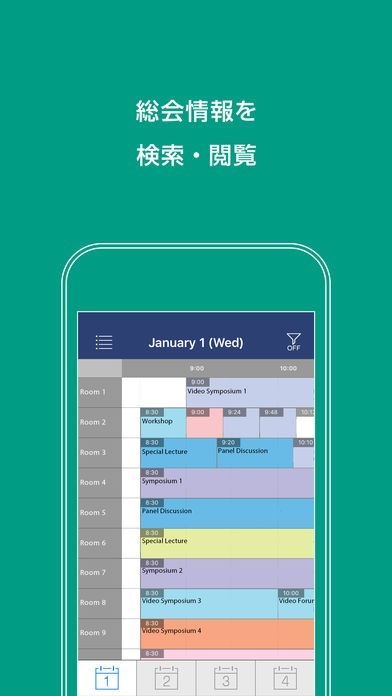 + 会期中の全てのプログラム情報とそのスケジュールを確認できます。