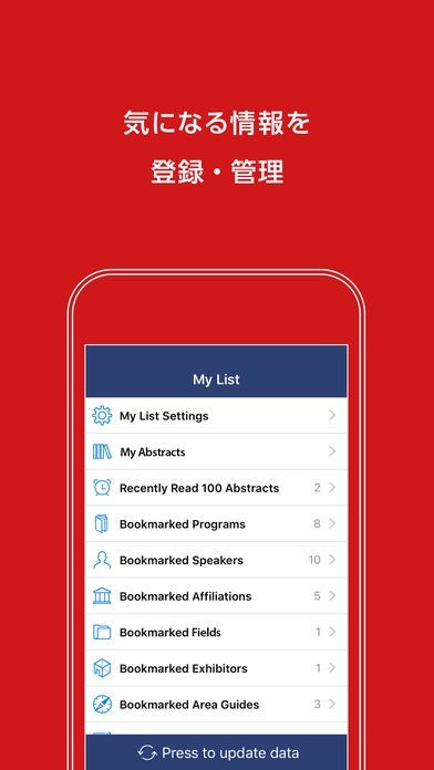 + 学会に関わる最新情報を取得することができます。