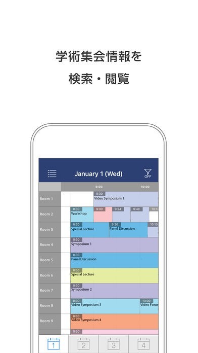 + 会期中の全てのプログラム情報とそのスケジュールを確認できます。