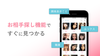 「出会い-Jメールの恋活・マッチングアプリ」は、日本最大級のマッチングサービスアプリです。「Jメール」は、豊富な検索条件によって、細かく検索することができるので、自分の理想の相手を見つけやすくなっています。それだけではなく、「Jメール」は、検索などによって見つけた相手とマッチングなしでメッセージのやり取りができるので、気になった人と気軽にやり取りができます。さらには、運転免許証、パスポート、健康保険被保険者証などで、18歳以上であることを確認しているので安心して利用できます。