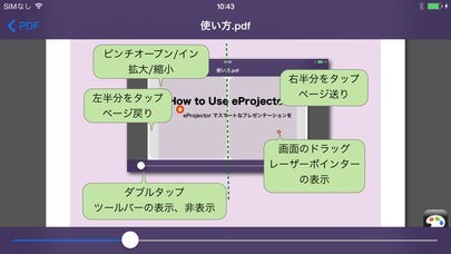 スマートフォンでプレゼンテーションできるアプリで、PDFを様々なアニメーション効果でページを移動できます。
